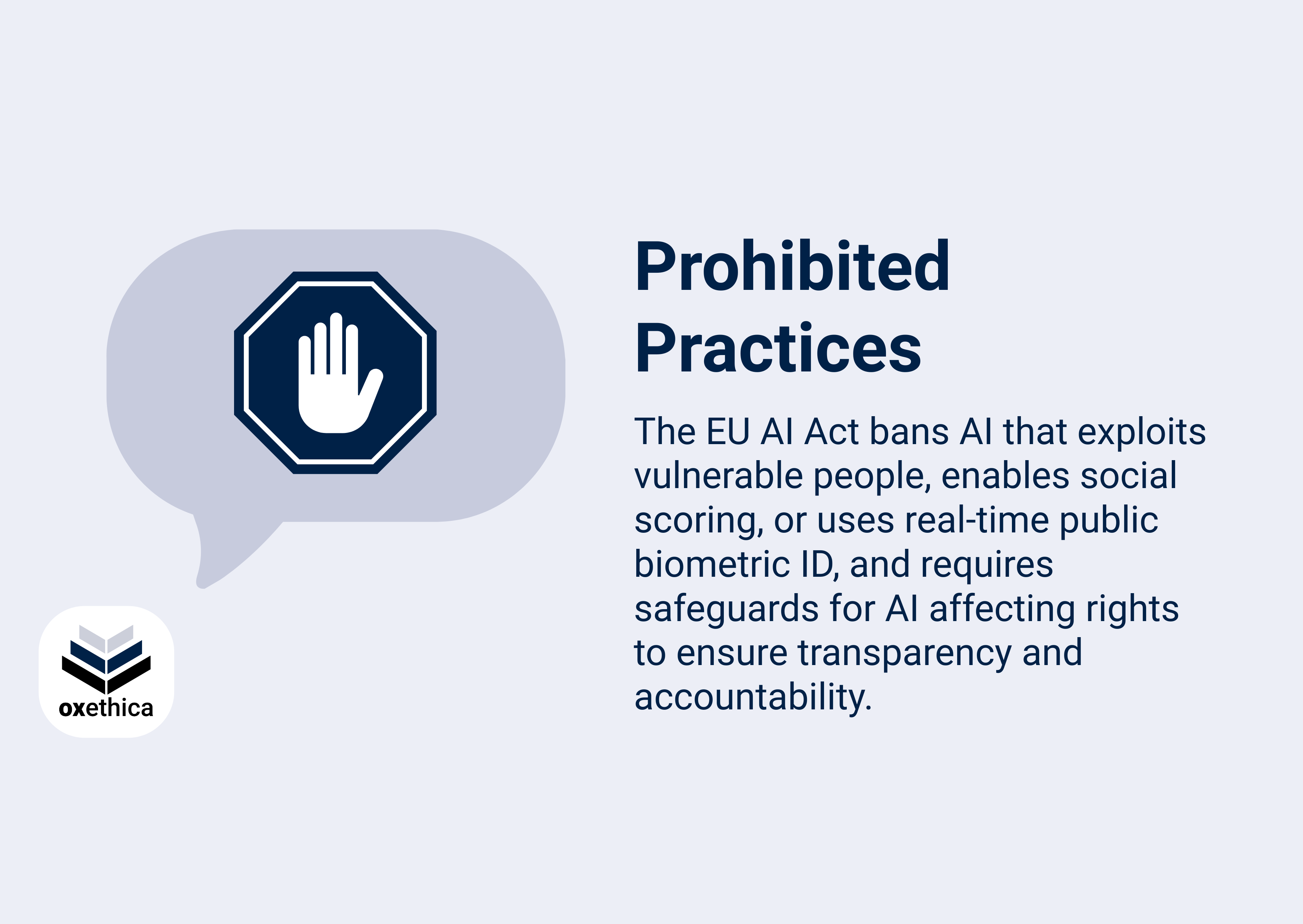 - The EU AI Act bans AI practices that manipulate, exploit vulnerabilities, enable social scoring, misuse biometric data, or create serious risks of harm